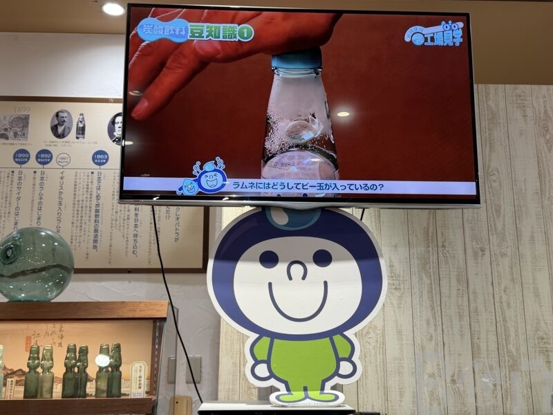 ラムネの製造過程を動画にまとめた工場見学風のコーナーもあり楽しめました。