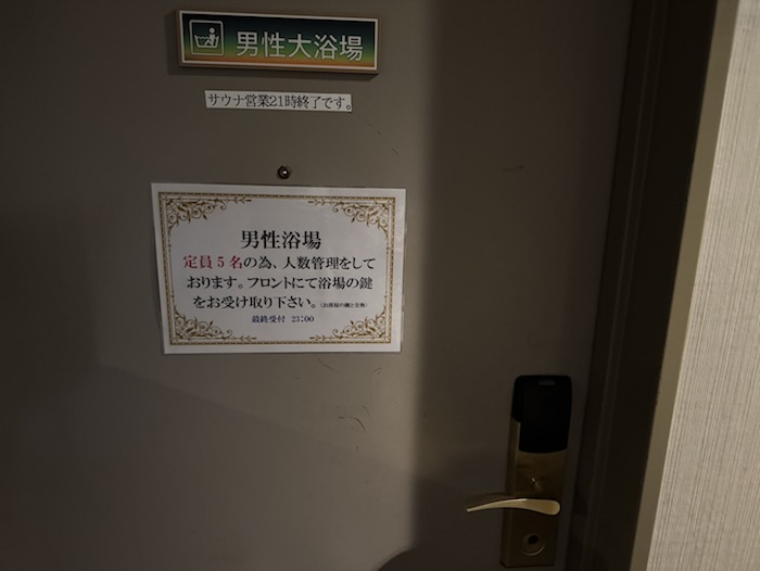 大浴場を利用するにはフロントで専用の鍵をもらう必要がありました。