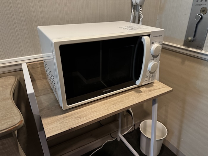 電子レンジもあったので近くのコンビニで軽食を買ってきて温めることも可能でした。