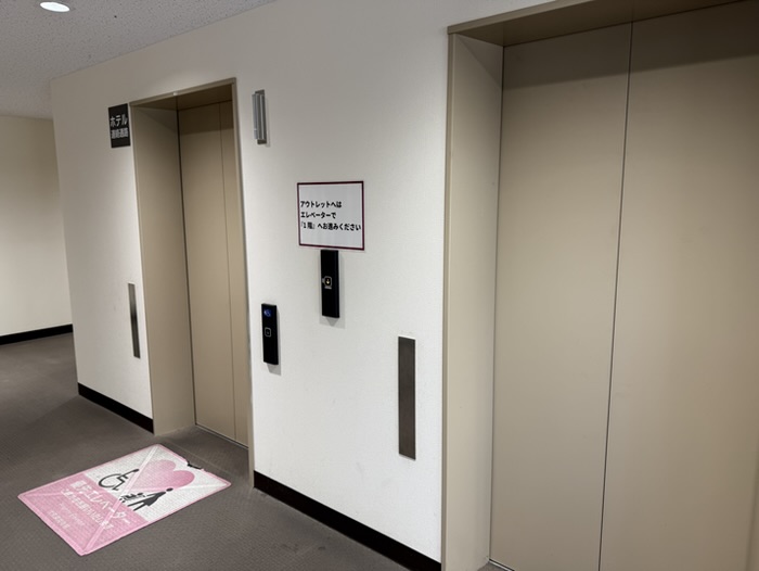 御殿場プレミアムアウトレットの最新部にあり、エレベーターでエントランスへ向かいます。