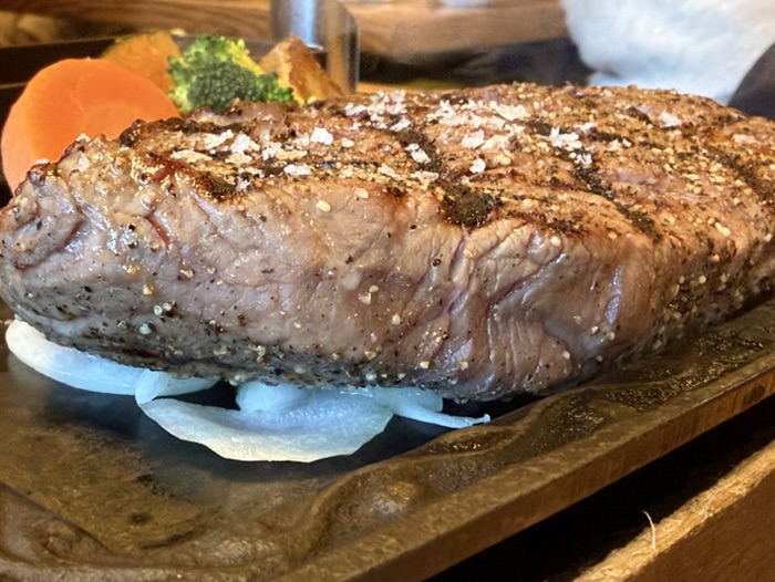 ミディアムレアでお願いした分厚いお肉はフォークを入れると肉汁が溢れ出ます。