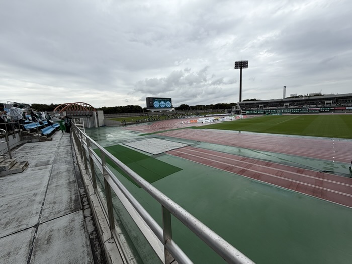 また、相模原ギオンスタジアムは「メインスタンドの一部しか屋根がない」ので雨天時は濡れます。