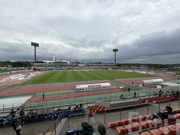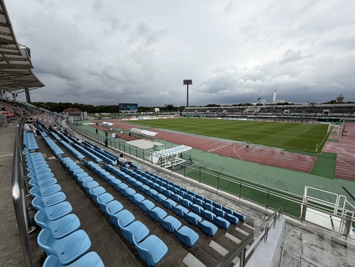 相模原ギオンスタジアムのバックスタンド席は少しピッチまで距離があります。
