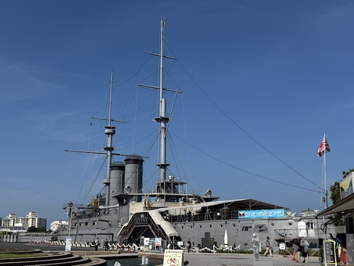 世界三大記念艦「三笠」が三笠ターミナルのすぐ隣に停泊しています。