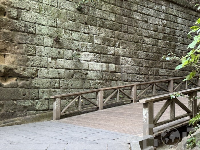 奥へ進むと石壁が出てくるのですが壁面には銃弾の跡が残っていました。
