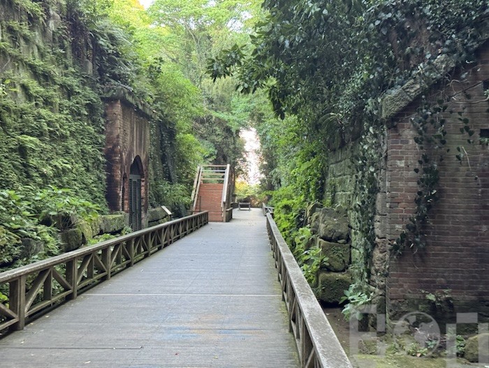 トンネル内の上部も煉瓦造りとなっており、頑丈にできていました。