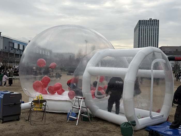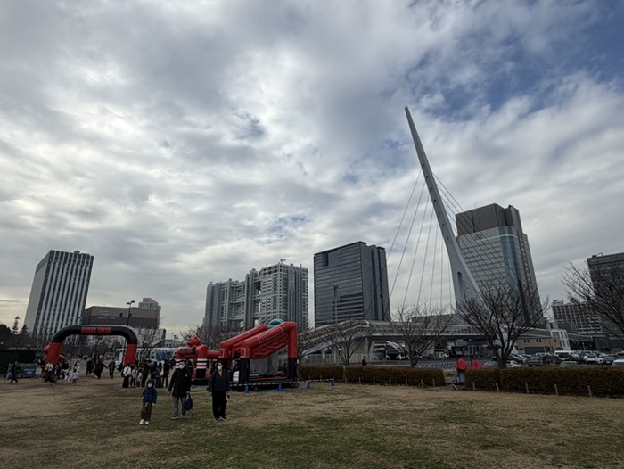東京テレポート駅からアリーナへアクセスする途中の広場には遊具が出展していました。