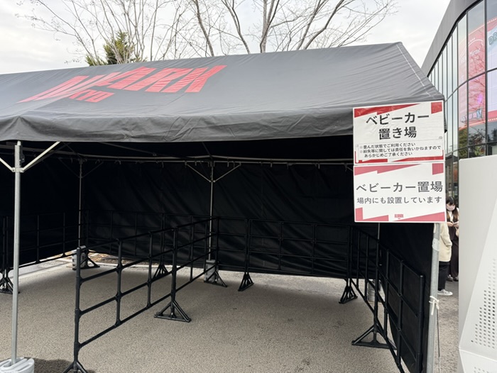 トヨタアリーナ東京には「ベビーカー置き場」があったので小さい子連れも安心です。